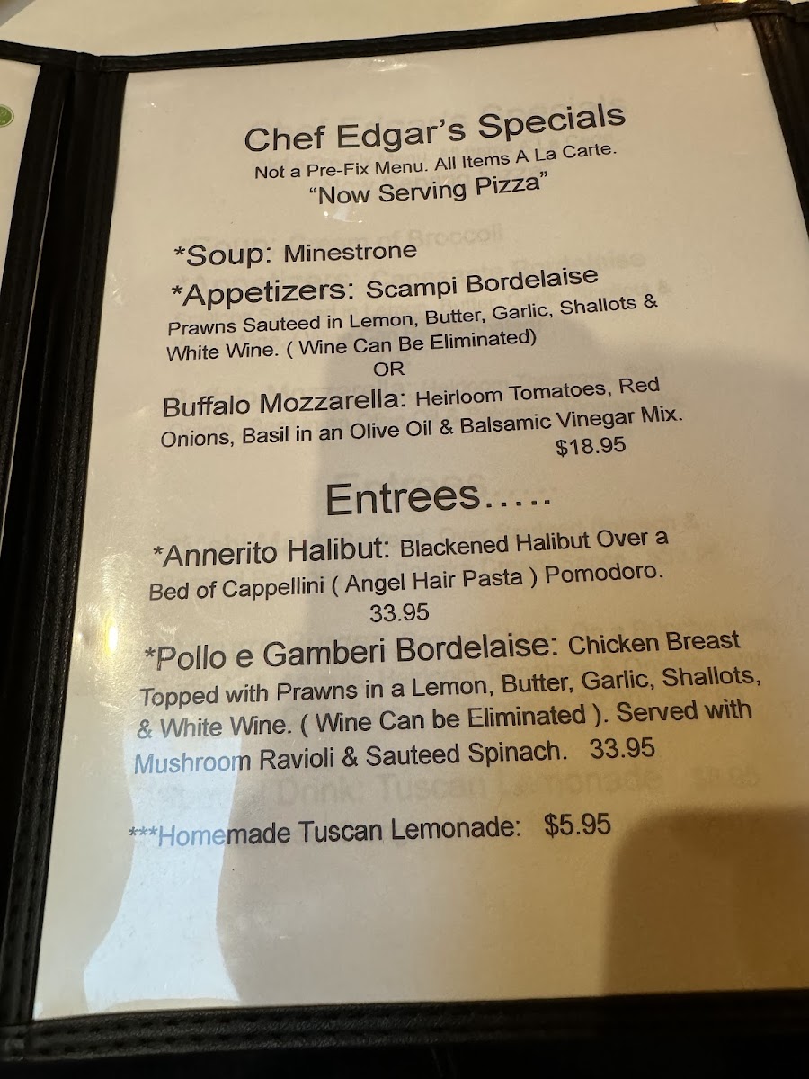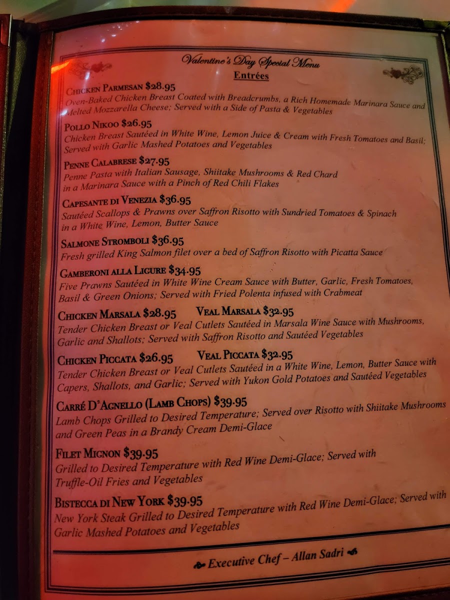 From the moment you step inside, the aroma of simmering sauces and fresh ingredients envelops you, promising an unforgettable culinary experience. The restaurant specializes in an array of inviting dishes, and if you’re not sure where to start, the Special Package Deals offer a fantastic introduction: choose a tantalizing entree from both the AList and BList for just $48.95. Or indulge yourself in the Family Style Supreme Special, which serves up generous portions—perfect for sharing. For $31.95 per person, enjoy a choice of salad, three premium entrees, two delightful desserts, and a bottle of wine, all designed to elevate your dining experience.