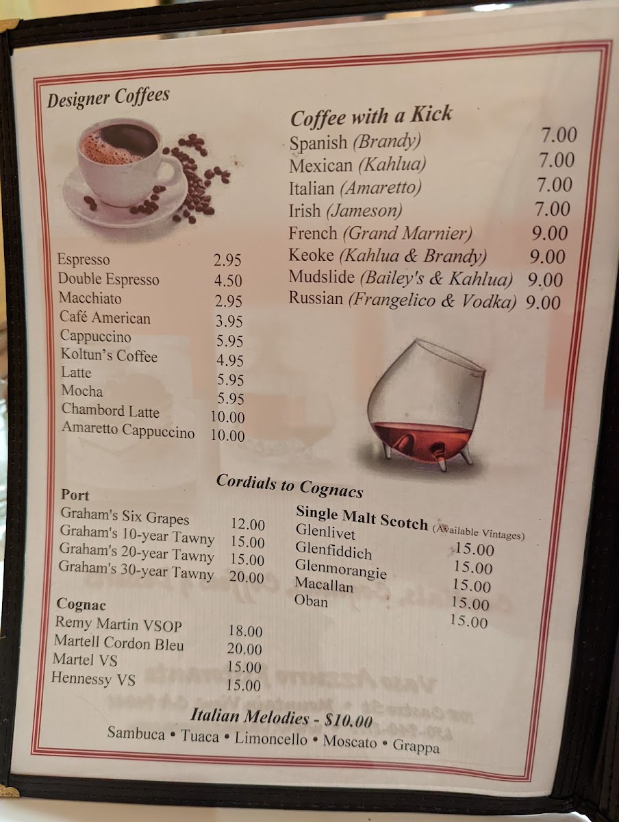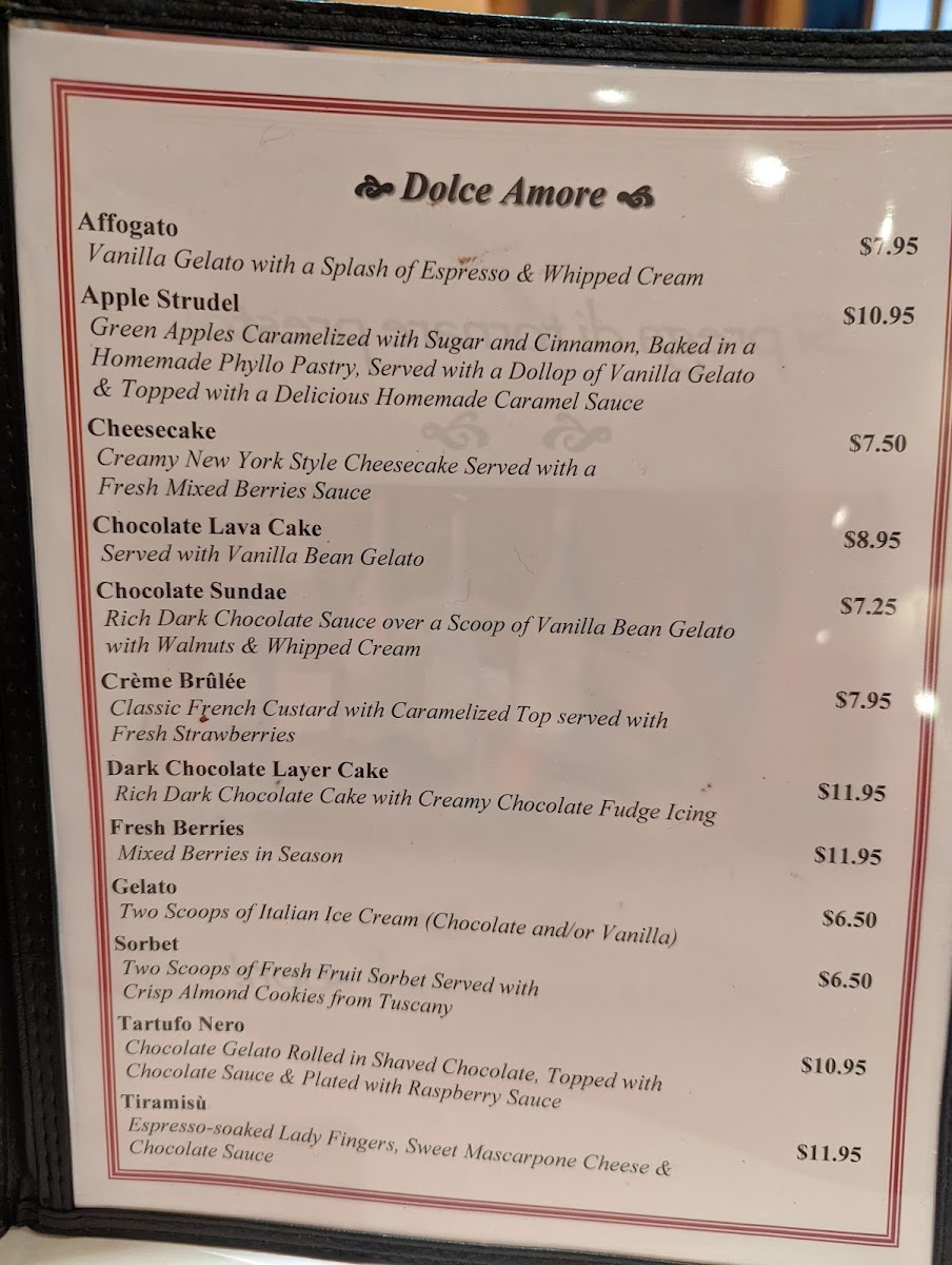Vegetarians will also find plenty to love, with options like the Insalata Spinaci, a refreshing mix of fresh spinach, orange slices, and kalamata olives, or the roasted veggie fettuccine that adds a surprising twist. And for dessert, history favors Tiramisu and Chocolate Lava Cake, both well-loved among patrons for their decadent richness.